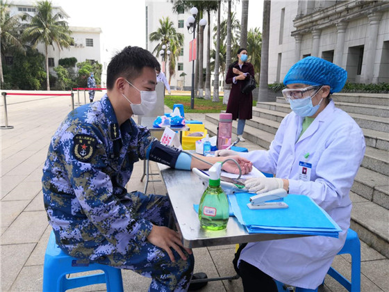 据了解,受新冠疫情影响,街头人流量锐减,单位复工推迟,我省血液库存告急,海南省血液中心制定了《新冠疫情血液安全供应保障预案》,联合省退役军人事务厅向驻琼部队发出献血倡议,得到了多支部队的积极响应。