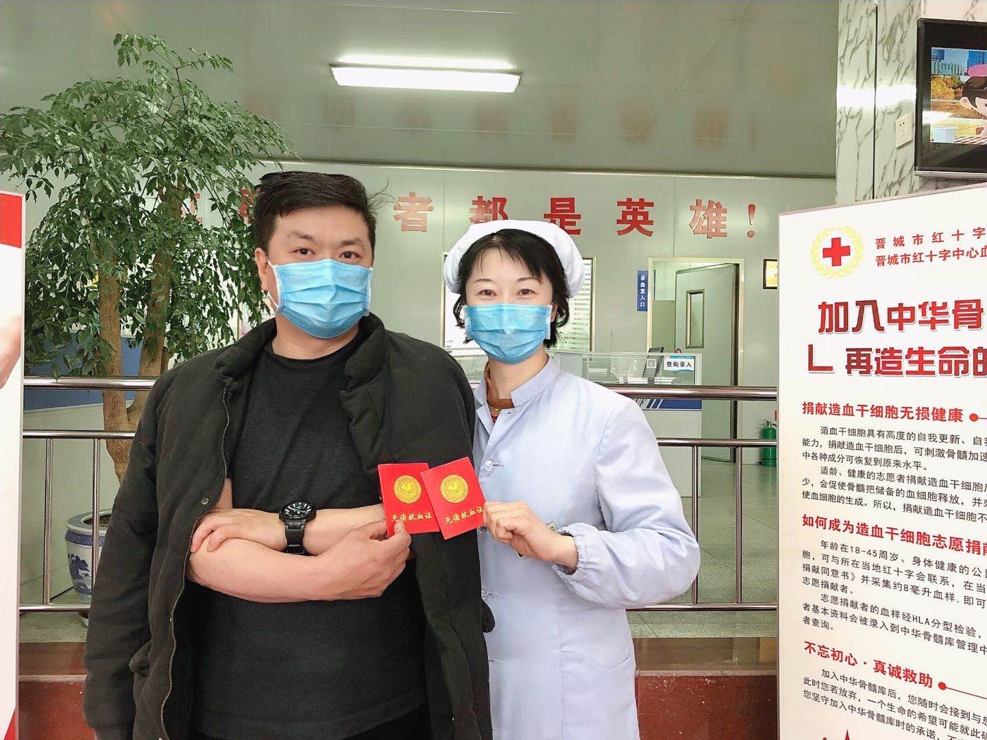 张军亮和他的妻子贺海霞也是情人节当天献血的一对夫妻,作为老献血者的他接到采血屋的电话后没有丝毫犹豫,俩人各自献血400ml,累计献血12600毫升,他们说这次的献血更让人倍感自豪和骄傲,因为疫情当下,他们也是通过无偿献血的方式为病患者贡献自己的绵薄之力。