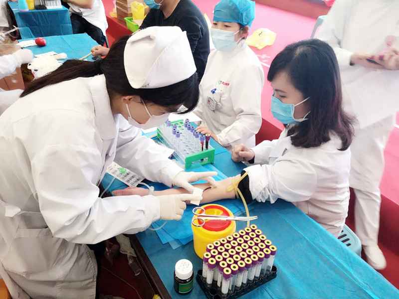 医院党委副书记、院长李海洋亲临活动现场,为参加献血的同事们加油助威:疫情防控形势依然严峻,我们不能松劲,参加无偿献血,也是战胜疫情的重要方式,党员同志要带头献血,共产党员的“初心”就应该在这个时候体现出来。刚下夜班的医生赶来了,急诊科的护士赶来了,机修组的工勤大哥赶来了,保洁大姐赶来了,口罩遮住了脸庞,遮不住献血者一颗颗炽热的心,更挡不住白衣战士逆行奉献的脚步。
