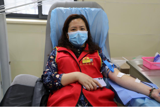 北湖志愿者协会的志愿者杜润群是一名老献血者,自2009年开始献血以来,今天已经是她第73次参加献血了,光疫情期间她就完成了3次机采血小板的釆集。说到为什么会在疫情期间坚持来参加献血,杜润群说:“今天是女性专属的节日,来献血不仅是送给自己的一份节日礼物,还能为打赢疫情防控战再做一份贡献,很值得!”