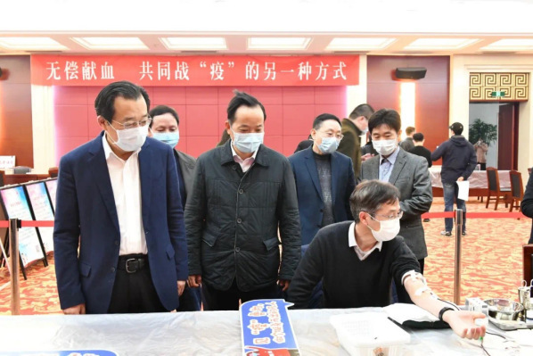 疫情防控期间,为了避免人群聚集,公务员献血活动由往年的2天延长至5天(2月24日至28日),公务员们做好个人防护,分批次自行前往献血,不扎堆,不聚集。常州市卫健委党委书记、主任朱柏松、机关工委副书记、调研员杨文华、刘业茂一行来到现场,对献血的公务员表示慰问。