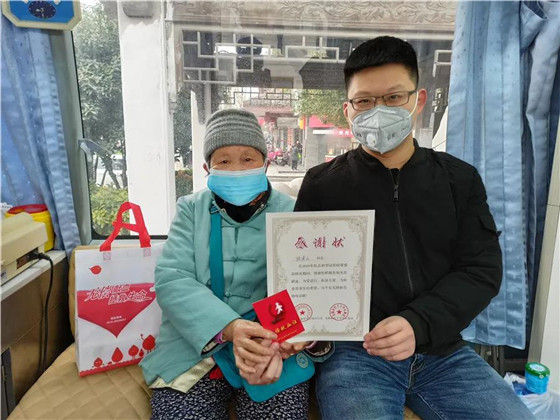 3月1日中午,南禅寺献血屋来了两位特别的“蒙面侠”。1993年出生的顾凌云在82岁的外婆的带领下,来到献血屋撸袖献血。顾先生表示,外婆年轻的时候是无锡市南长区人大代表,也是名老党员,疫情特殊期间,特别想为社会出点力,经常动员家人来血站献血。老人家说:“疫情期间,我没法为大家提供口罩,想去献血。但是我岁数大了,超过了献血的年龄,就想着能不能动员年轻人去献献爱心,为社会出份力。”