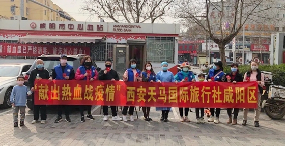 3月7日下午,西安天马旅行社咸阳分社的10名门店负责人自发来到中华广场献血屋,用无偿献血的方式助力疫情防控。