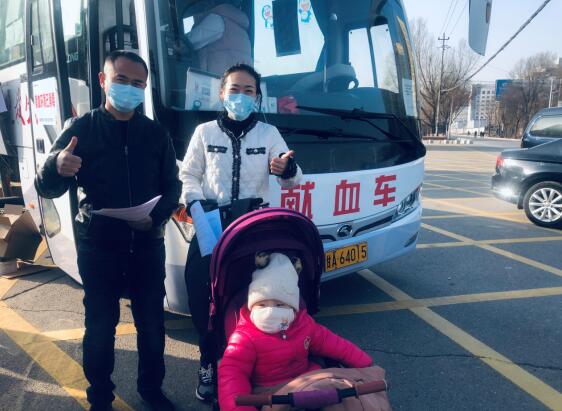 年轻夫妻带着孩子一起献爱心