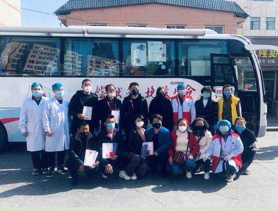 卫生健康专干献血后和同事们合影留念
