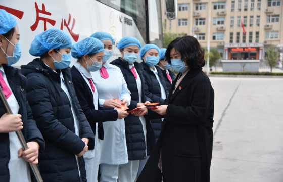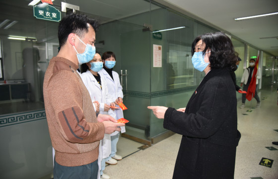“大家辛苦了,等疫情防控结束,我们领导班子再为大家庆功……”从外出下乡采血的体采科、机采科,到成分科、检验科、供血科、质管科,赵书记一行领导向大家在疫情防控期间默默地坚守和艰辛的付出努力给予了充分肯定,并送上诚挚地感谢和专项党费慰问金,鼓励大家继续保持战时状态,切实担负起全市临床供血的责任和使命,从严从细从实做好疫情防控和采供血工作,齐心合力打赢疫情防控阻击战。