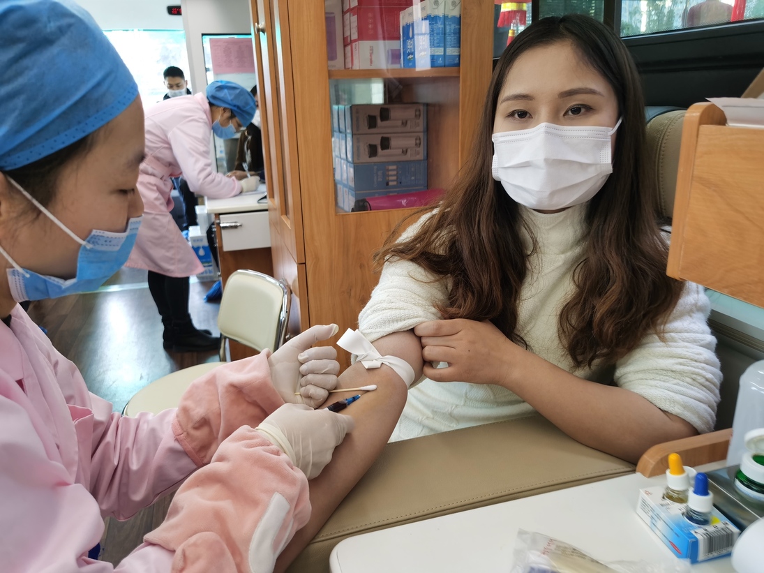 “每年单位都会组织两次献血活动,这次恰逢在这么特殊的时段,作为“热血青年”的我们更应该前来奉献。心有多大,爱就有多宽广,怀抱着爱,就会看到暖阳。”王玲玲微笑的说。