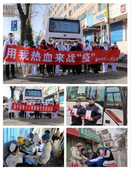 医者仁心:甘于奉献,爱心献血,为爱逆行,为生命接力。2月19日,榆中县第三人民医院的医护人员开展无偿献血,助力抗击疫情。