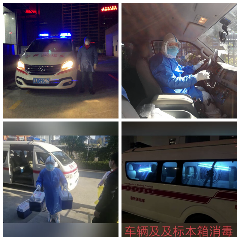 疫情发生以来,采血量明显下降,随着一线采血点的扩增,及向郊区、农村等远程点发展,收血任务明显加重,同时在2月16日全省开展新冠康复者采集血浆工作以来,身为党员的张红旗总是说“让我来”,坚持24小时待命,及时保障新冠康复者接送及全省相关采集标本的运送任务。白天,身着防护服,完成新冠康复捐赠者的接送任务;夜晚,当各地市的新冠康复者血液标本运到杭州后,为确保临床及时救治,不论多晚均第一时间送往浙一医院。而当出车结束回到中心后,常常已是午夜时分,又及时按规程对车辆内部、标本运送箱进行消杀处置,准备好第二天的出车工作。人员少、任务重的情况下,大家相互体谅,团队合作精神充分体现。洪健根母亲一直病危住院,为了不影响工作他尽可能的利用晚上及休息时间多陪护,张红旗老丈人病重住院,他咬咬牙关照老婆“交给你了,你替我多陪护”,寿亦峰、季昕本该在忙碌一天后回家休息了,但一听说有县市采集的标本要送,均自觉留下加班完成,工作12小时以上但没有影响次日继续上班。党员邵浙东、徐建权主动加入收血、应急出车行列,为保障血液得到及时、安全运输不计个人得失。