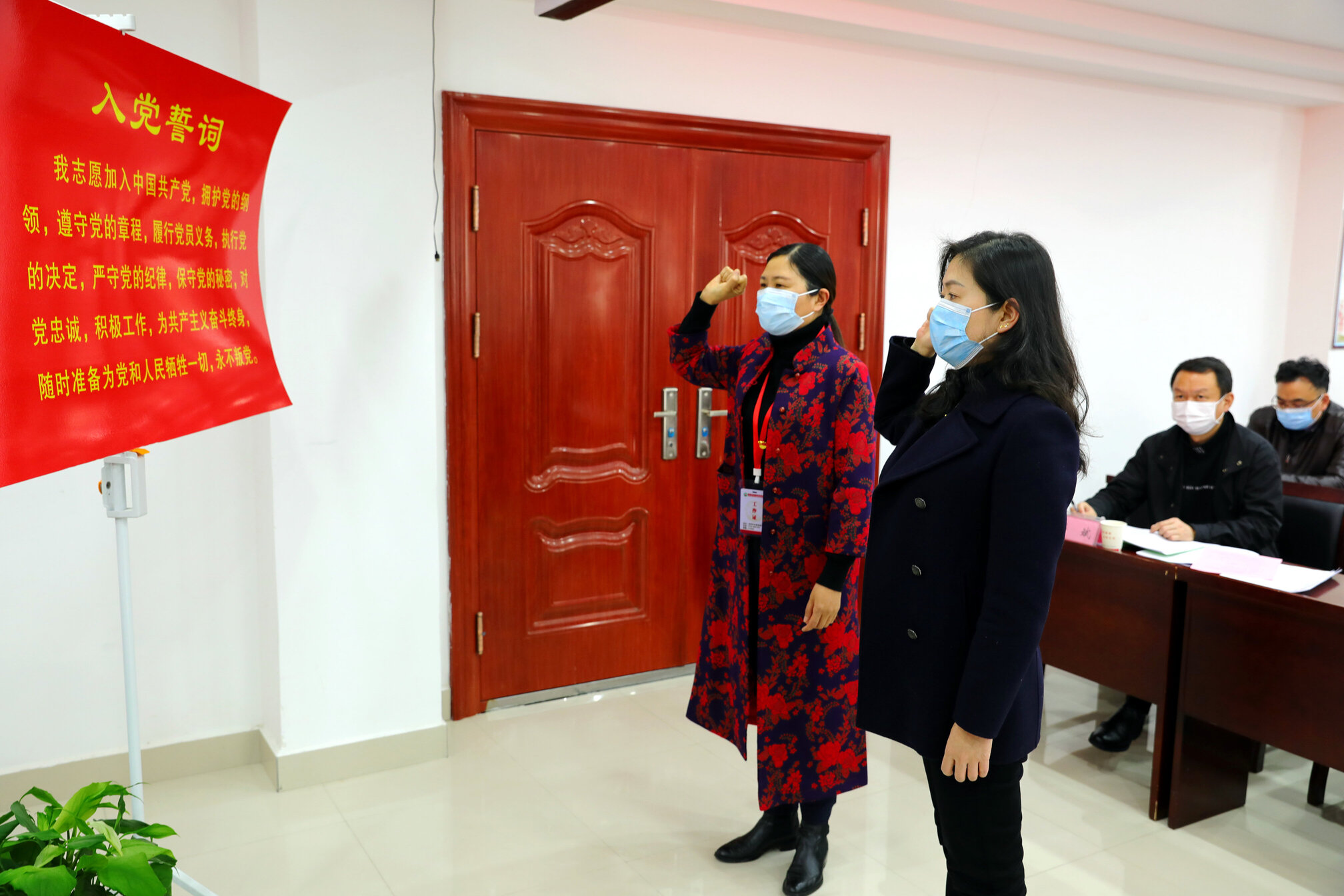3月12日下午,市中心血站在综合实验楼四楼会议室举行了抗击新冠肺炎疫情火线入党宣誓仪式。入党积极分子刘芳在党委办主任王丽星的引领下,面对党旗进行了入党宣誓,以特殊而庄严的方式成为光荣的预备党员。宣誓仪式由党委副书记孙昂主持,党委书记、站长方奎明为新党员佩戴党徽。