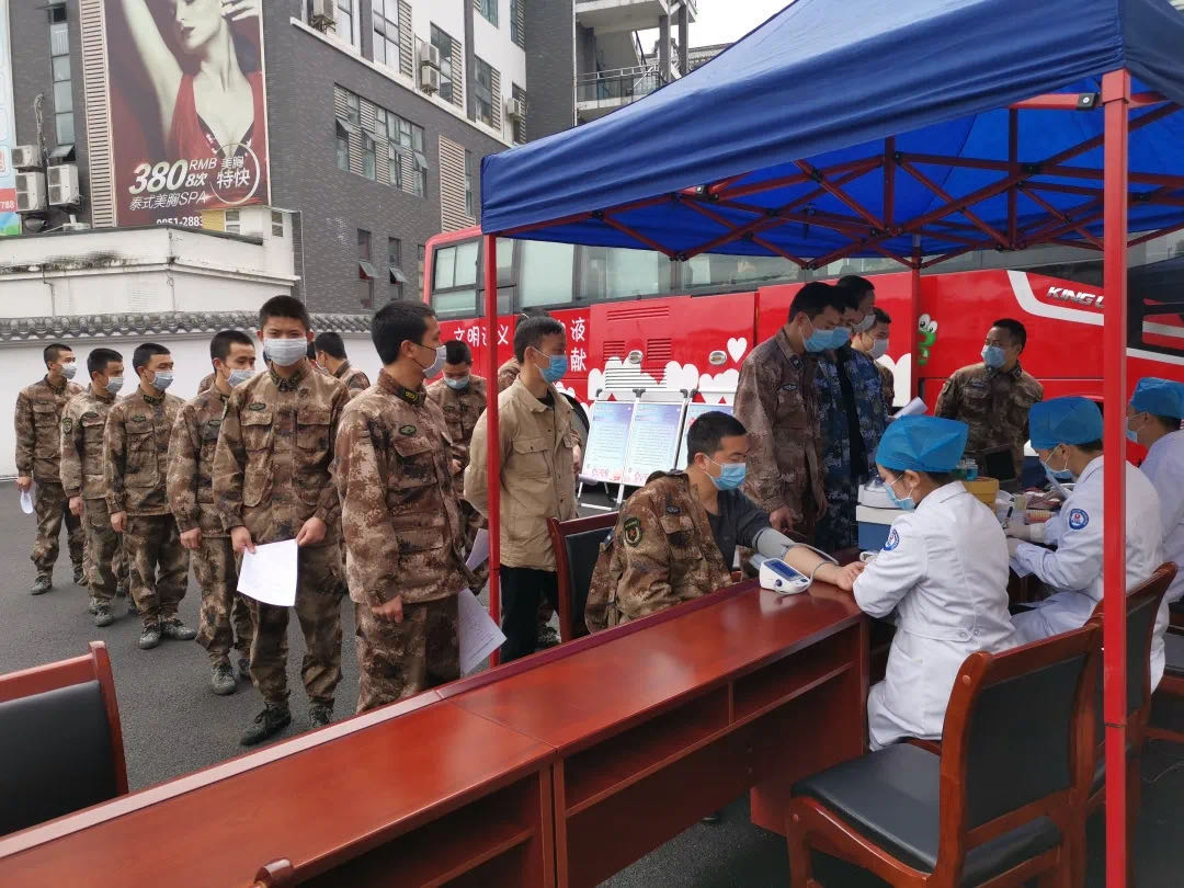 近日,献血车缓缓开进遵义军分区,官兵们早已集合等侯,整齐划一,蓄势待发。