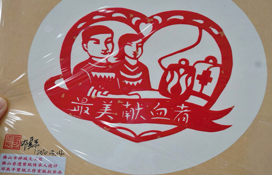 邓燕平大师表示,希望通过这份名为《最美献血者》的原创剪纸作品,鼓励广大献血者和血站工作人员,也希望能以自己的特殊方式为战胜疫情以及为无偿献血事业加油助力。