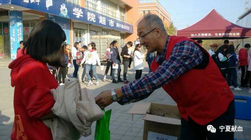 (图为2017年于晓波在团体献血活动中进行志愿服务)