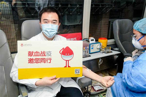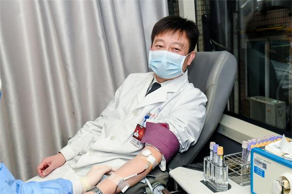 上图:上海长征医院院长张殿勇参加无偿献血