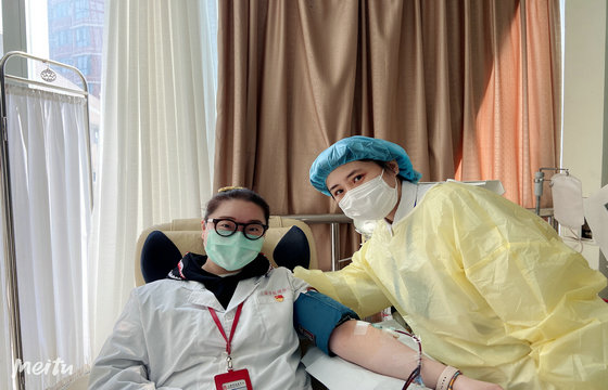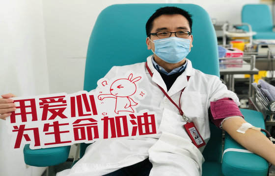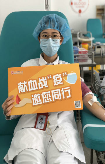 上海市血液中心采供血部职工捐献热血抗击疫情