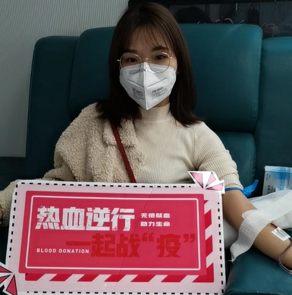 陈鑫梦是天津市南开区五马路小学的教师,听说现在缺血,她在没有网课的时候赶紧出门捐献血液,她说:“当前疫情防控是关键阶段,医院救护治疗急需用血,为抗击疫情尽自己的绵薄之力,这本来就是我应该做的。”