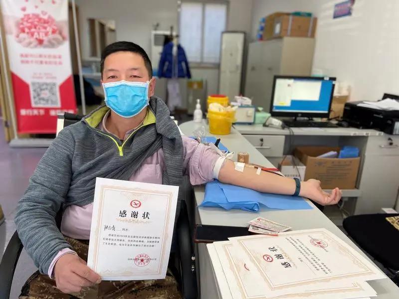 在苏州血站的微信公众号上获知由于大量返城务工人员迟滞在老家,广大市区响应国家号召闭门不岀,苏州用血量缺口很大,他毅然决然的又一次来到了嘉余坊献血屋。今天是他在苏州捐献的第25次全血,累计已捐献9800毫升。这还不包括20多年来出差至北京、上海、海南等地的献血量。