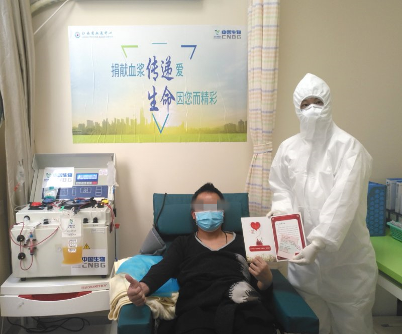 为贯彻国家卫生健康委发布的《关于印发新型冠状病毒感染的肺炎诊疗方案(试行第五版)的通知》,在江西省卫生健康委的统一部署和指挥下、在南昌大学一附院的大力配合下,江西省血液中心于2月19日开始了新冠肺炎恢复期血浆采集工作。当日上午,成功采集全省首例新冠肺炎康复者恢复期血浆。
