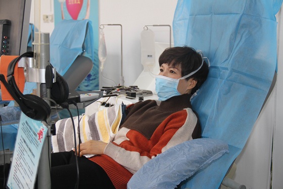 颜香云是血站党支部书记兼副站长,也是台州市第一位无偿机采血小板捐献者,作为一名血液工作者,已经坚持献血20年。1月30日上午,她再次捐献了1个治疗量血小板,这也是她第67次献血。与她一同前来捐献血小板的还有她的丈夫林先生,当天他捐献了1个治疗量血小板,这也是他第9次献血。