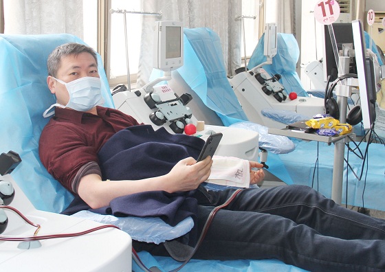 王建兵也是我们血小板捐献队伍中的老献血者,他说,春节这段时间刚好不忙,有时间就来献,平时我也是保持20天左右的献血间隔期。没有太多考虑疫情的影响,主要是我的血型也有需求,我觉得应该献一份。