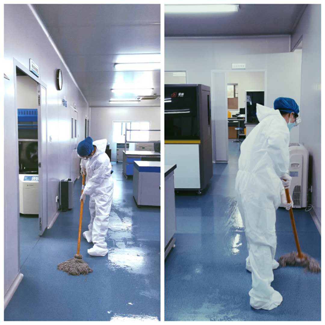 (实验结束后,工作人员清洁台面、地面,做好消毒措施)