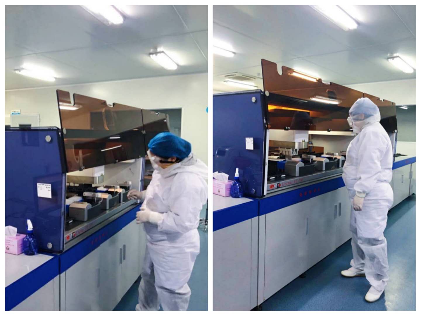 (工作人员时刻关注仪器状态,确保试剂充足顺利完成检测)
