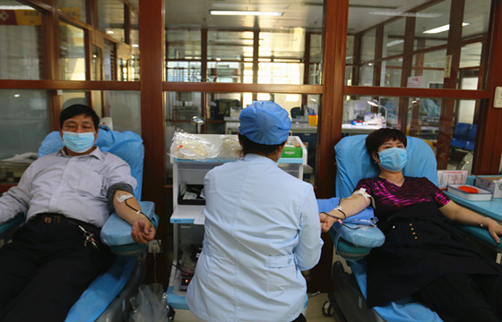 夫妻双双把血献。全国无偿献血奉献奖金奖获得者李兵携夫人廖福贞来奉献爱心。他们表示因疫情献血人数会受影响,在这特殊的时期,他们要做出自己的贡献。