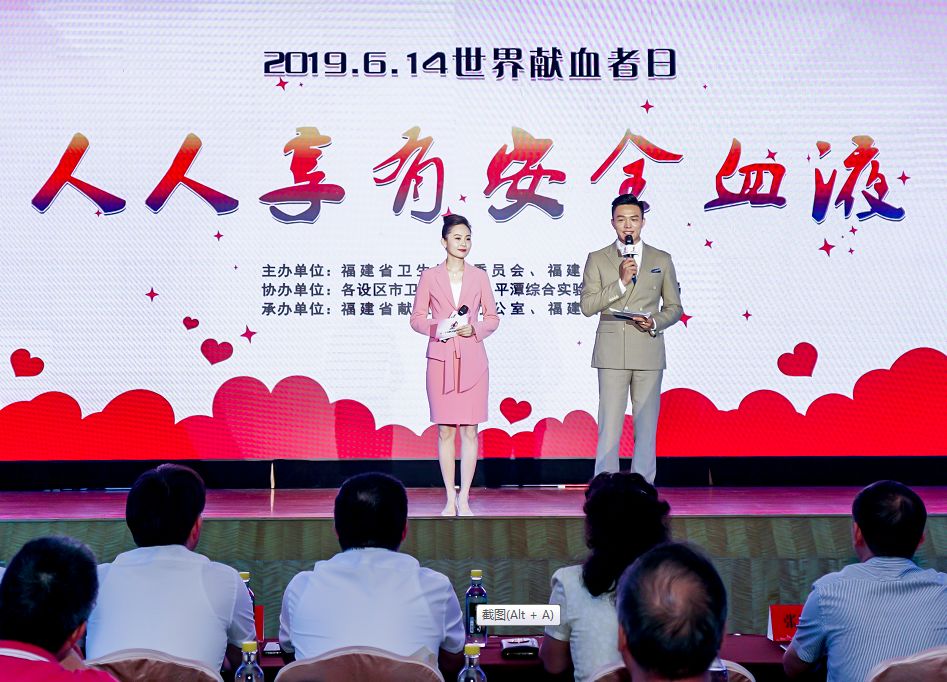 项晖(左)主持福建省第十六个世界献血者日庆祝活动