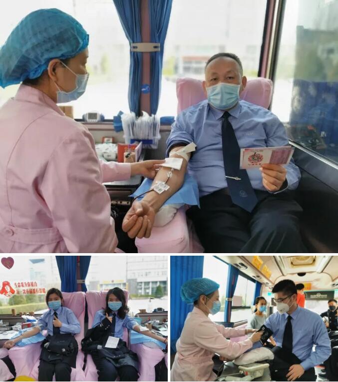 参与献血的民警和辅警们严格遵守“戴口罩”、量体温、手消毒、保持距离的安全措施。分批次、时段配合医务人员进行填表、体检、化验、抽血。