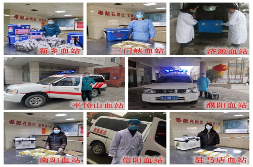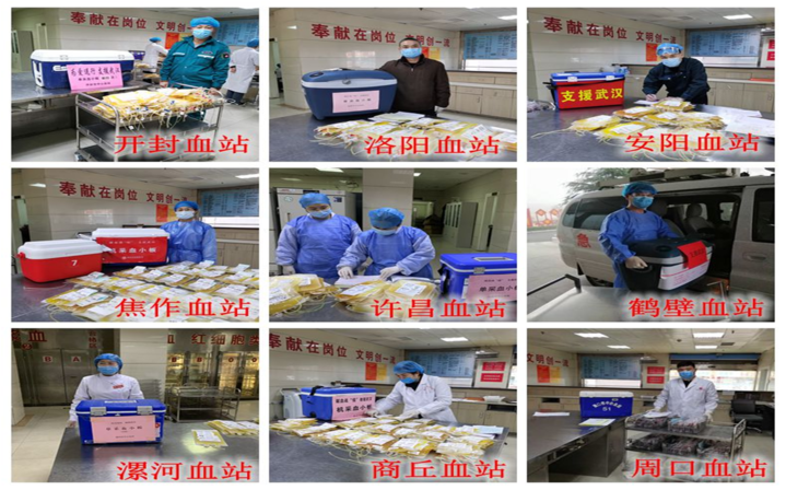 疫情期间全省血站团结协作、密切配合,全力以赴完成支援武汉临床用血重大任务。无论雪天、雨天、雾天,各地市血站的送血车都能克服种种不利因素影响,把挑选出来的效期最新的血液安全及时汇集到河南省红十字血液中心,统一调配交付武汉血液中心。新冠肺炎疫情发生以来,河南省已分六个批次紧急支援武汉红细胞80万毫升、血小板450个治疗量、冰冻血浆20万毫升、冷沉淀500袋、Rh阴性血液1200毫升,这些承载着河南人民深情厚谊的血液已经通过武汉血液中心发往武汉各级医疗临床用血机构,用于亟需临床输血治疗的急危重症患者。