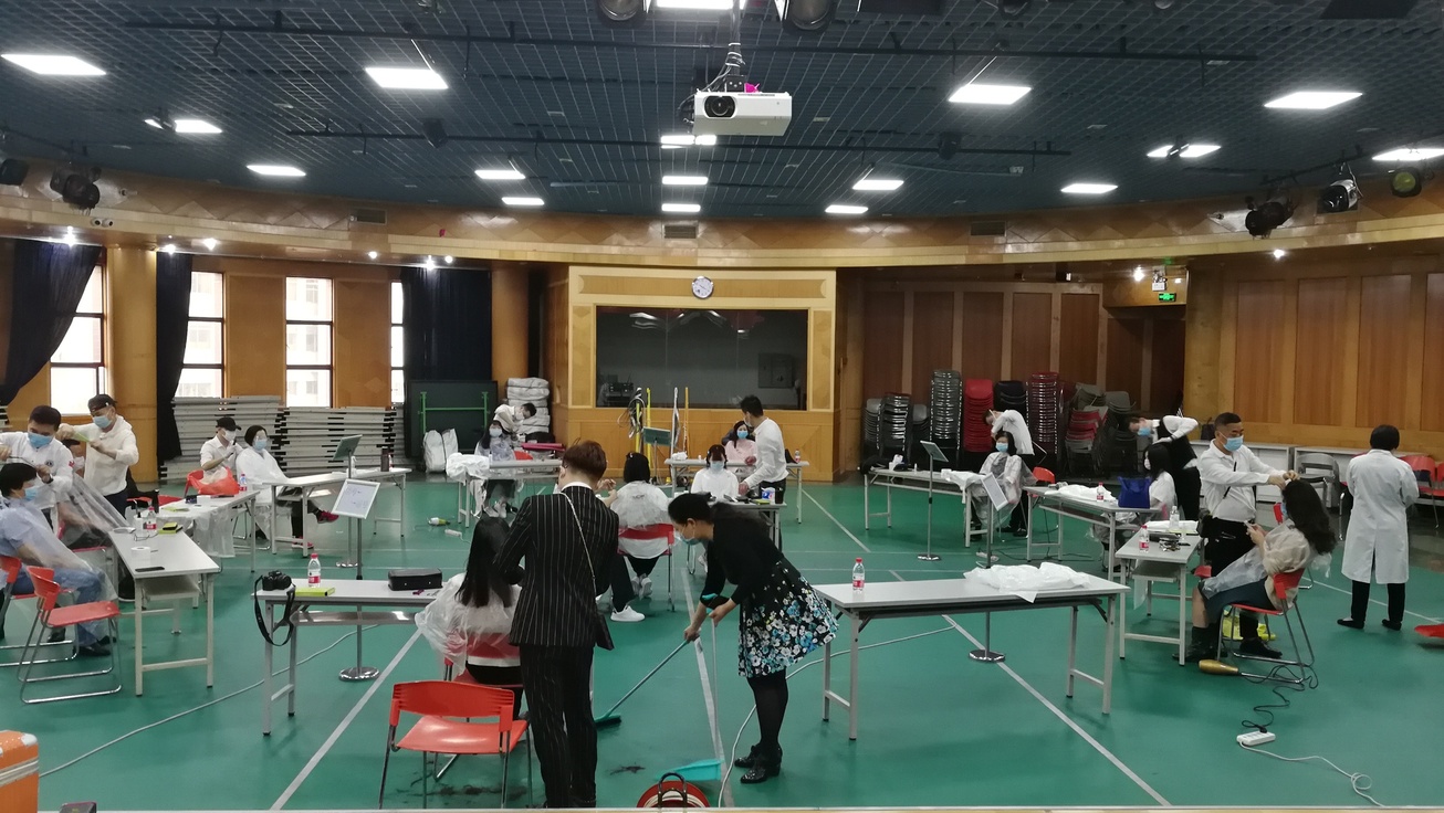“影响力”公司派出11位高级美发师在赵吉祥经理的带队下,于2020年3月19日早上9:30提前来到血液中心,为54名血液中心医务工作者提供贴心的美发服务,安全快捷地解决困扰大家已久的“头等大事”,更高标准更优质地开展献血服务工作,大家开心而来满意而归!