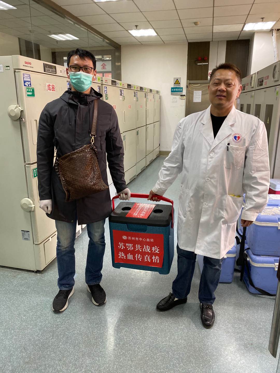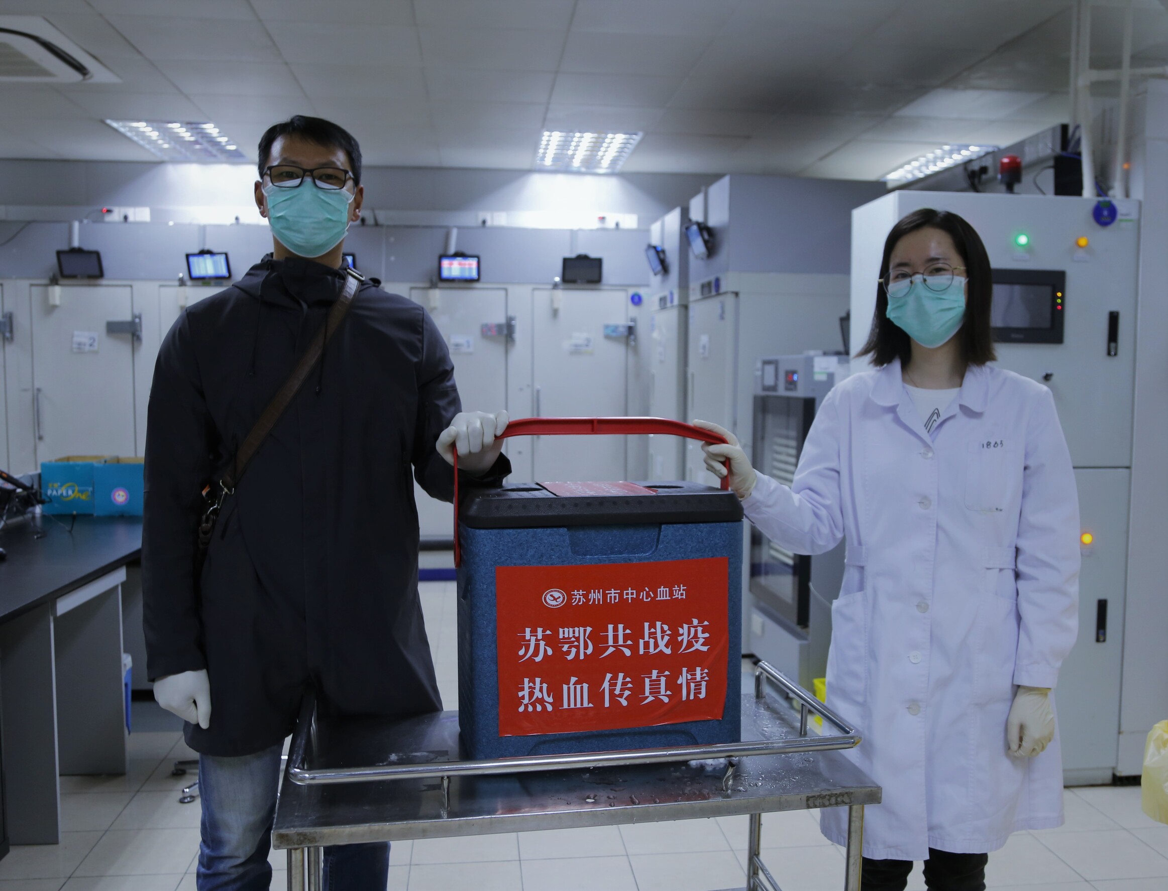 3月20日上午,3袋新冠肺炎康复者血浆从苏州市中心血站装箱出库,于中午抵达南京省血液中心,21日上午与省内其他城市采集的康复者血浆一道,发往武汉,用于救治仍然在院的新冠肺炎危重症患者。