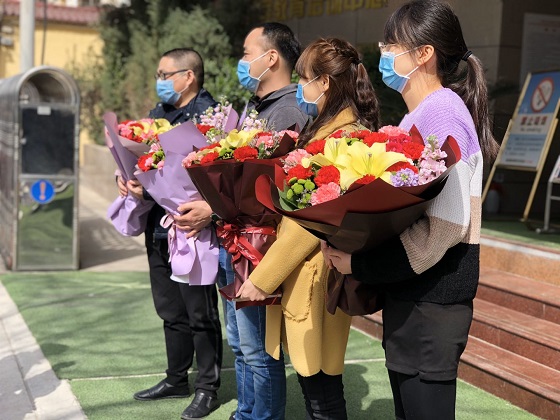 市血站第一批疫情防控队伍4名队员不辱使命,逆行而上,出色完成流调任务,得到上级部门和流调社区的高度评价。队员们于3月13日下午平安凯旋,血站领导班子和相关科室主任提早守候在血站单位门口迎接队员们归队。