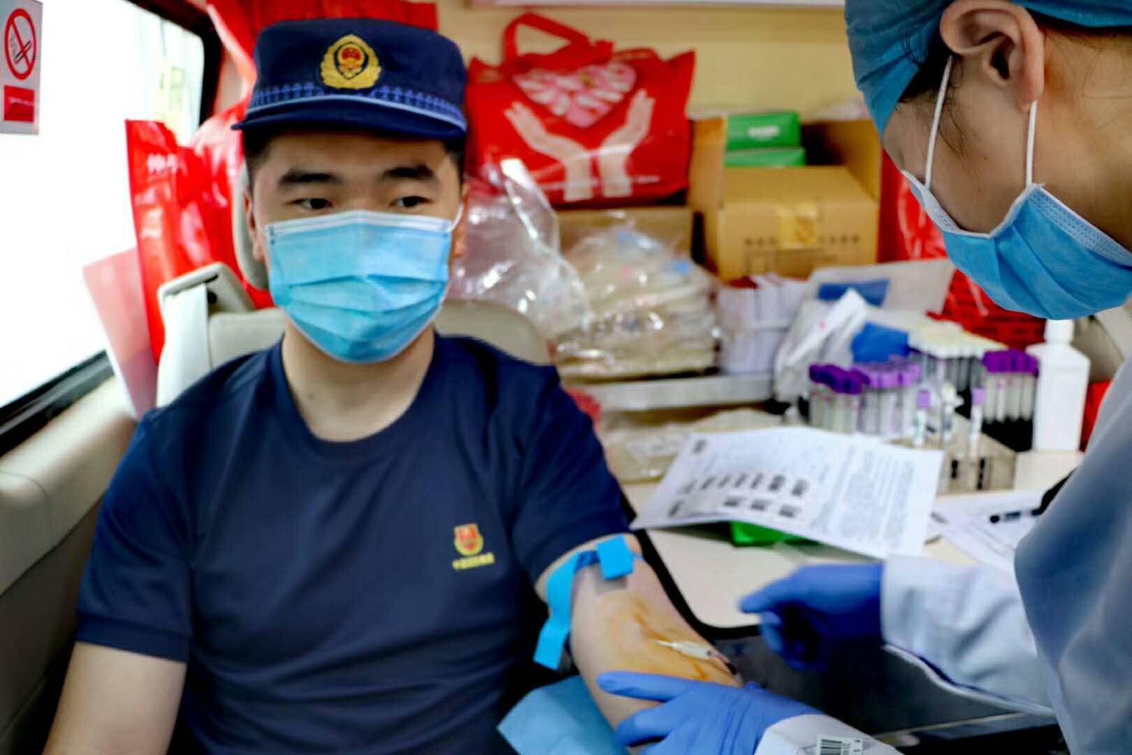 受新冠肺炎疫情的影响,导致无偿献血人数减少,为保障临床用血需求,牡丹区消防救援大队及时向广大消防指战员发出无偿献血倡议,得到广大指战员积极响应。在血站工作人员讲述了献血程序后,消防指战员主动配合医生做好体温测量、填表、验血、采血工作,无偿献血,奉献爱心,为爱接力,与爱同行,消防指战员用实际行动诠释了新时代“火焰蓝”心系人民,为民服务的风采。献血结束后,血站医护人员向全体献血指战员发放了《无偿献血证》及《感谢状》,对消防指战员无偿献血的行为致以崇高的敬意。