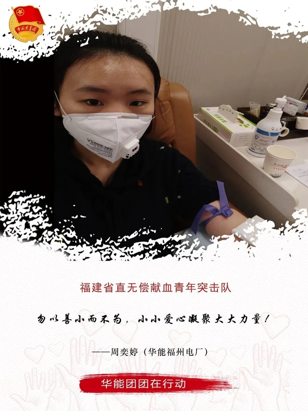 2月中旬的一天,福州华能电厂运行部值班员周奕婷收到了公司发来的招募令——近来临床供血紧张,呼吁大家积极加入“省直无偿献血青年突击队”,参与无偿献血。