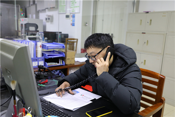 工作人员正在电话预约固定献血者参加献血