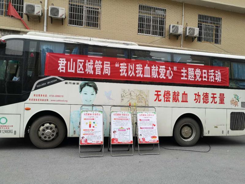 为全力确保疫情防控期间血液供应保障和临床需要,3月25日,君山区城管局开展了“我以我血献爱心”主题党日活动。党员干部积极踊跃报名参加无偿献血,用血液凝聚爱心,用行动诠释奉献!