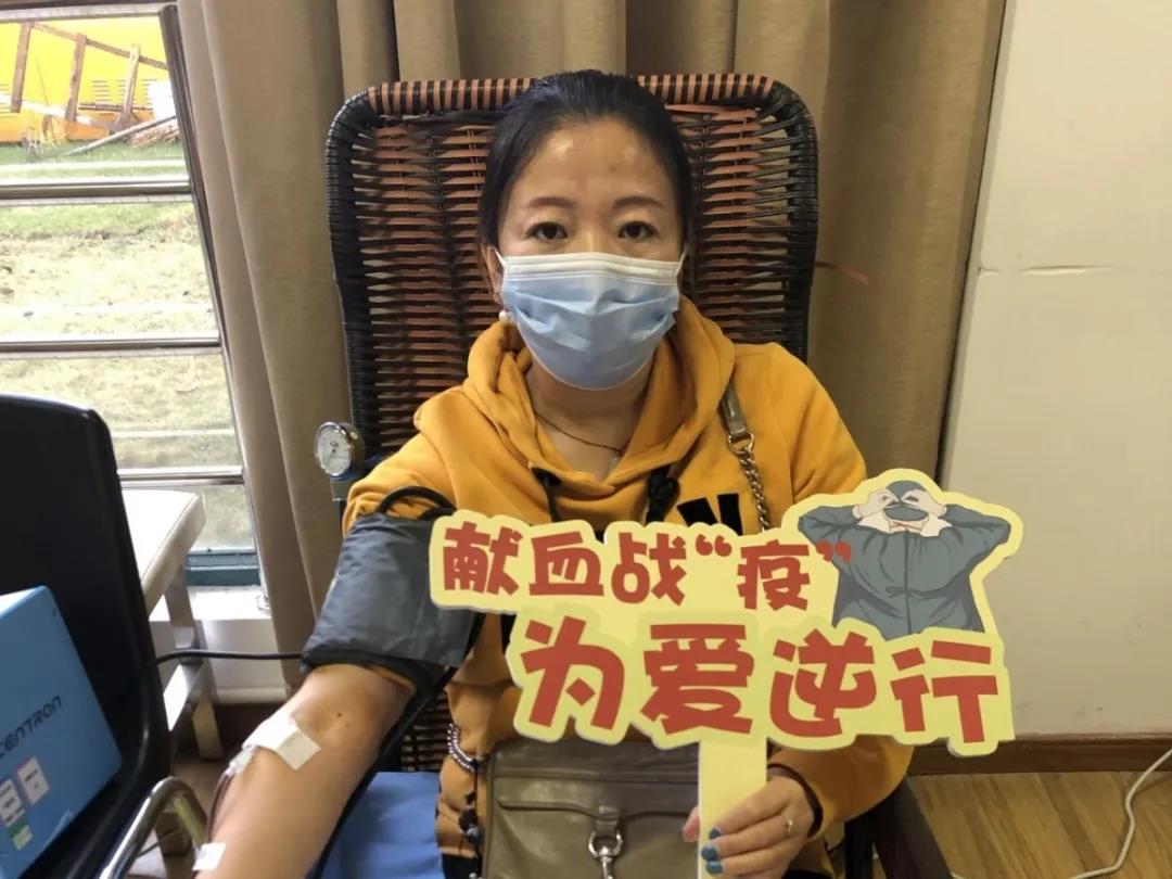 贾民,参加多次无偿献血的她面对针头毫无畏惧,她表示:“能在这个特殊时期捐献热血、奉献爱心,我感到很光荣。”