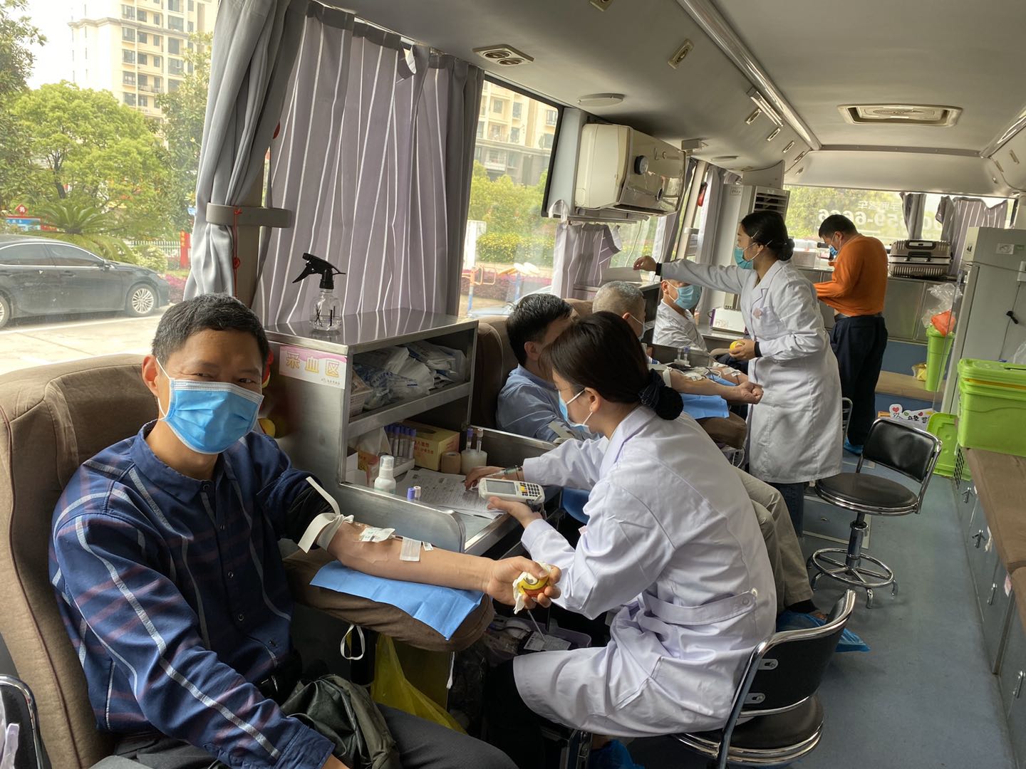 为确保献血者及血液安全,在疫情防控期间,所有参加献血的人员采用分时段、分散型的献血模式,避免人员集中献血。在献血过程中,严格落实“先询问,后测体温、一进一出”等措施,最大限度保障参加献血者及献血工作人员的安全。在献血前我们做好医疗器械、污染物品、物体表面、献血车内外的清洁消毒,充分保障献血环境安全。