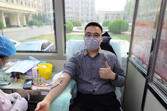 人教处主任科员刘占虎是当天的第一位献血者,也是一位“老献血者”了。说起自己的献血经历,刘占虎感触良多:“08年汶川地震那会儿我上大三,看见那么多伤员需要输血,就跑到献血屋想献个血,结果AB型血已经采满了,很遗憾没有献成。后来2010年玉树地震,我又跑去献血,这次终于成功了。此后只要有机会,我就会去献血。今年我们国家遭遇疫情,听说疫情期间采血困难,我又坐不住了,正好单位要组织献血活动,于是第一时间就报了名。”不单自己坚持献血,刘占虎还积极发动身边的亲戚朋友参加献血,“我父母都是60后,在我的影响和带动下,也都参加过献血。”当被问到如此热心于献血事业的原因时,刘占虎回答道:“我认为献血这件事不论是对社会还是对个人,都是一件好事。对社会做点贡献,对自己身体也有好处,何乐而不为?以后只要身体状况允许,我会一直坚持献血,直到不能献为止。”