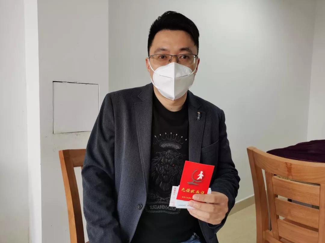 沈龙飞,来自华新镇纪委。华新镇多年的无偿献血者队伍中都有他的身影。看到无偿献血志愿者招募令后,他立刻报名。“看到医务人员冲在抗疫一线,深受感动,我也要尽一份力。”他这次捐献200ml,累计无偿献血600ml。