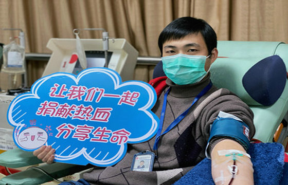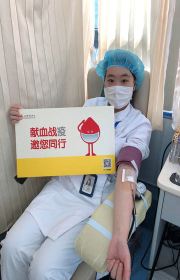 抗疫期间,上海市血液中心职工心系临床病患,捐献热血,为抗击疫情贡献自己的一份力量。3月22日,体采科曾庆在工作间歇捋袖捐献全血。她在本次抗击“新冠病毒”工作期间,作为一名一线员工积极工作,努力招募无偿献血者并响应组织的号召,以实际行动参与并呼吁身边人加入到这场献血战“疫”。