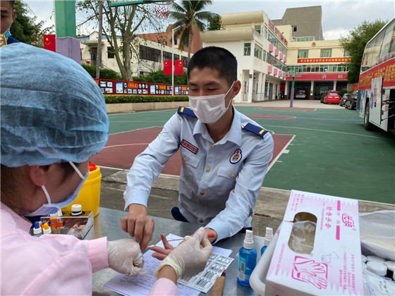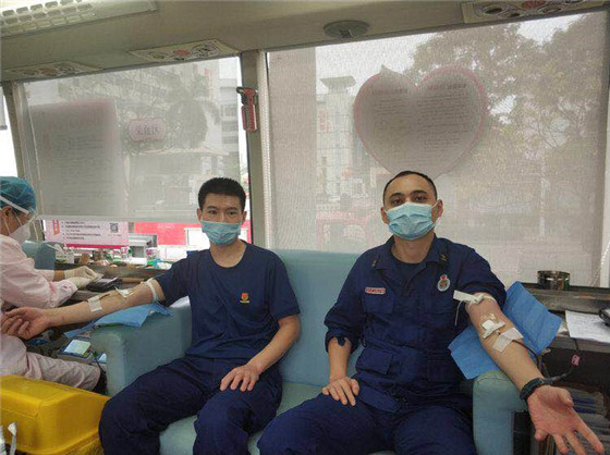 3月18日,海口市消防救援支队特勤大队指战员们踊跃献血,用热血助力战“疫”。