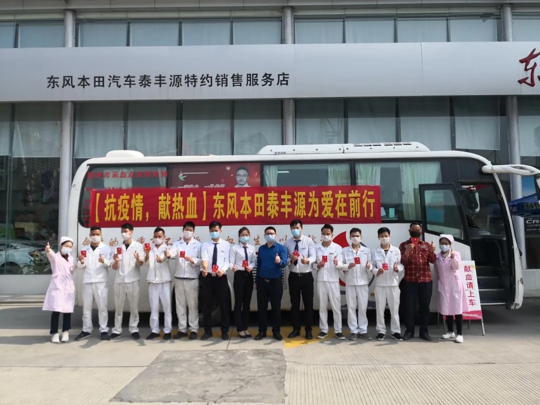 在阻击新冠肺炎疫情防控期间,我市街头无偿献血人数骤减,血液库存持续下降。东风本田梧州泰丰源店得知这一情况后,主动联系血站,并在郑总经理的组织带领下,发动广大员工参与“抗疫情 献热血”无偿献血活动。东风本田梧州泰丰源店是2020年新冠肺炎疫情防控期间梧州市首家参与无偿献血活动的爱心企业。