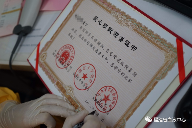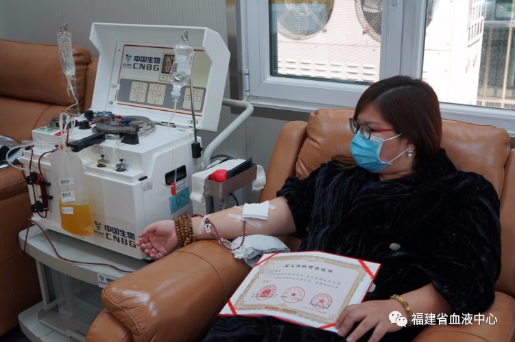 当天上午9时,张女士到达中心填写相关资料,进行体检和献血前初步筛查后,于10:30顺利完成400毫升血浆的捐献,成为福建省第五位成功捐献恢复期血浆的献血者。