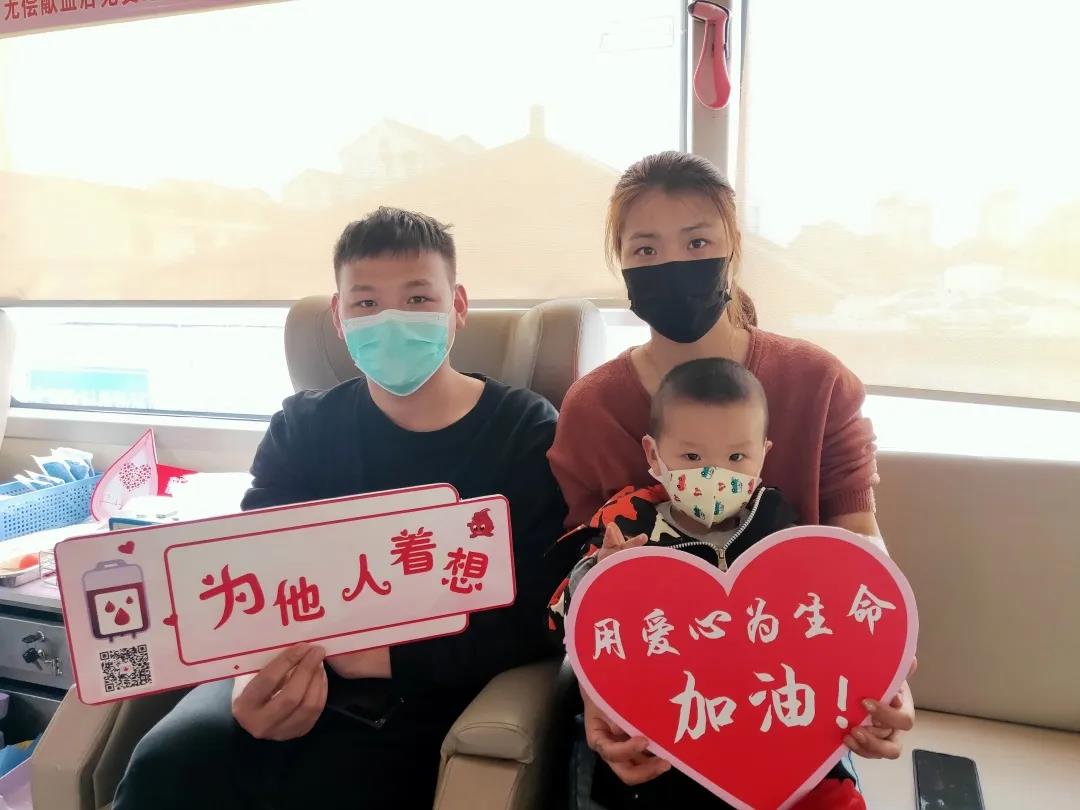 在爱心献血车上,万蒙杰(左)和陈佳佳(右)夫妻俩趁着休息专程来献血,还特意带上了他们两岁的儿子,希望能给小孩做个榜样,以后也做一个有爱心的人,为社会作出一份贡献。
