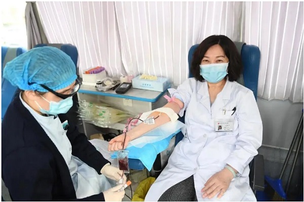 鲜红的血液流入一袋袋采血袋内,虽然口罩遮挡了他们的面庞,却遮挡不住大家眼神中流露出的热情,这些熟悉的“蒙面人”:有的刚值完夜班还未休息就跑来献血的;有的刚下手术台匆匆赶到的;有休息在家赶来的……他们分布在医院不同的岗位,既有一线医护人员,也有行政后勤职工;既有初次献血的“新手”,也有“久经沙场”的“老兵”:“看到血源紧缺的消息,心里一直很着急。抗疫没能上一线,也感觉挺遗憾。现在献了血,感觉踏实多了。”“希望为患者尽点绵薄之力。”……平淡的辞藻,诉说出人间大爱,坚定的前行,诠释出责任担当。