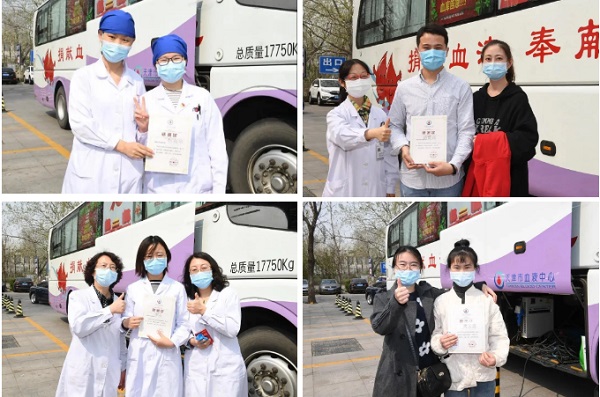 3月初,一中心医院输血科党支部刘伟医生、王文胜医生、杨丽医生、肖艳丽医生、赵媛医生就自发组团结伴来到市血液中心捐献血液。作为输血科医生,没有人比他们更清楚血液之于生命的意义,病人没血用,他们看在眼里急在心里,他们决定自己挽袖献血,虽然不能解决所有病人的血液,但是星星之火可以燎原,在大家的齐心协力下,终会度过难关。一中心移植科大夫李兵兵、妇产科李小林也来到市血液中心捐献了血液。