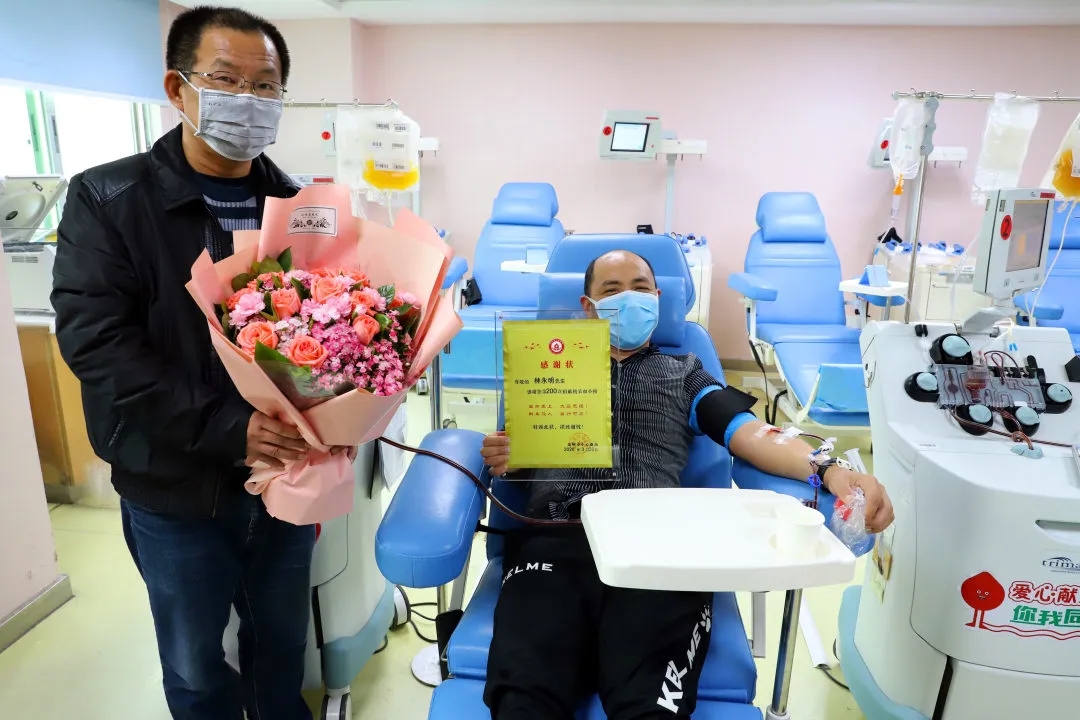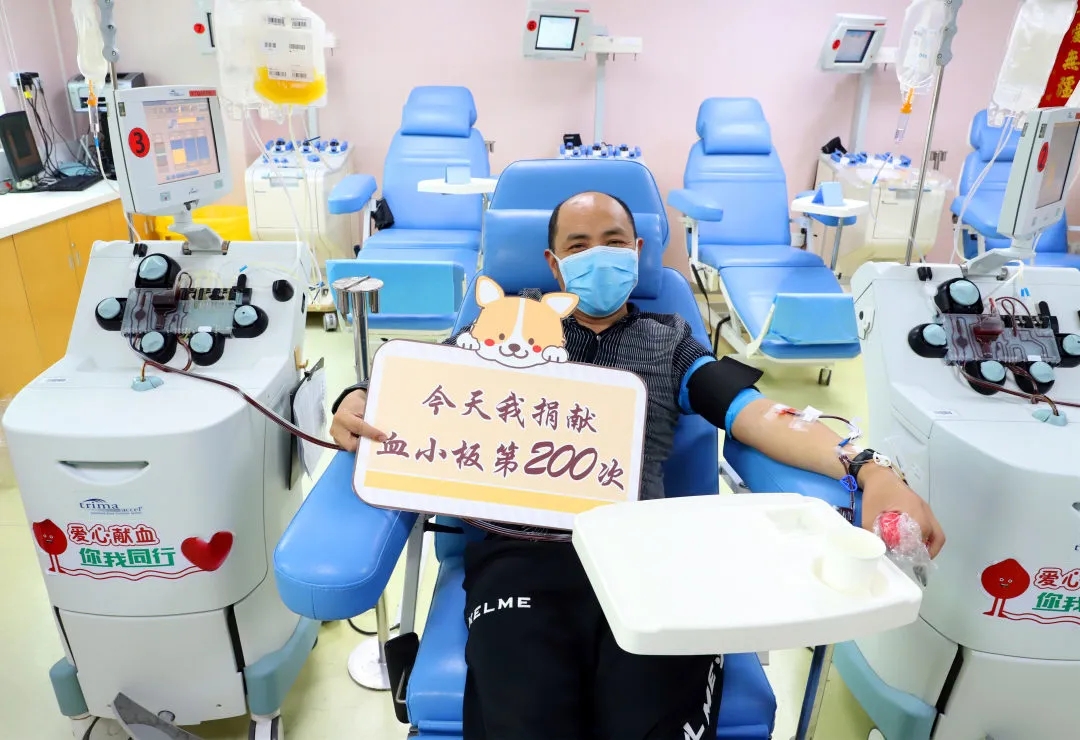 3月30日,天上下着淅淅沥沥的小雨,和往常一样,林永明按照预约时间来到了血站,经过填表、初筛等程序,合格后再次捐献1.5个治疗量血小板。但这一次和往常又有些不同,“今天是第200次捐献血小板了,9年来几乎没间断过。”林永明笑着对工作人员感慨。