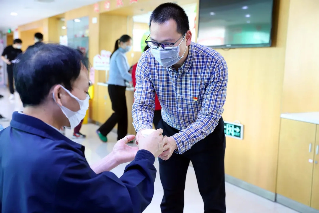 血站党员志愿者协助现场工作人员开展疫情期间健康征询工作、为献血者检测体温、维持现场秩序与环境卫生等,心无旁骛地把每一项工作、每一个环节都做到位,用心守护献血者的献血安全。